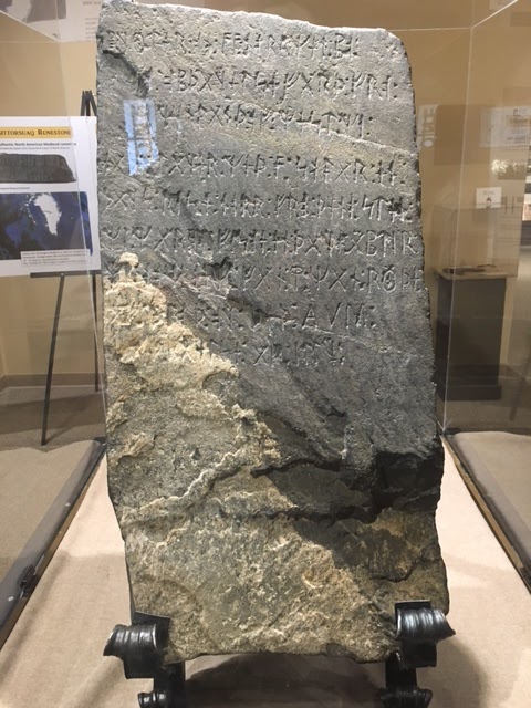 We made just one museum stop during our drive from Morton to Fargo. In Alexandra, Minnesota we learned about the earliest European explorers to America - the Vikings. The first Scandinavians to come to Minnesota were a band of Vikings who left a record of their visit in 1362 by leaving behind what is now known as the Kensington Runestone. This artifact was discovered in 1898 by Olof Ohman while clearing an aspen tree from a field on his farm. It records the death of 10 Vikings who were apparently massacred by Indians while separated from the main body of their Viking band. The runestone is on exhibit at the museum, as well as, other Viking artifacts found in the area.